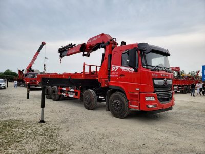 作者:程力專用汽車股份有限公司東風前四后八20噸折臂隨車吊,選用宏昌天馬20噸折臂吊機,國六采用東風前四后八玉柴300/350馬力發(fā)動機,陜齒10檔變...